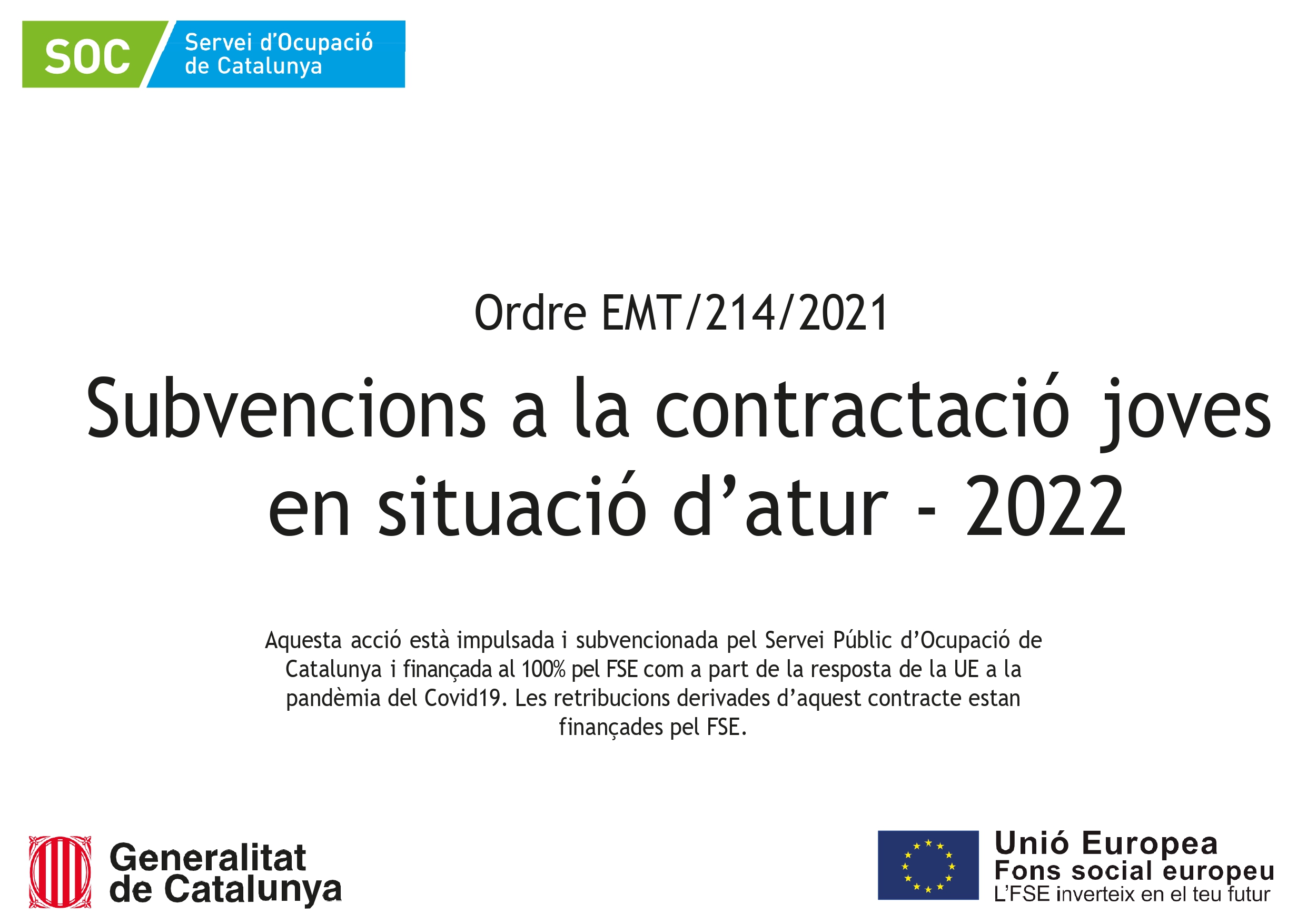 Dins el nostre equip comptem amb un treballador amb un contracte subvencionat a través del Servei d’Ocupació de Catalunya.